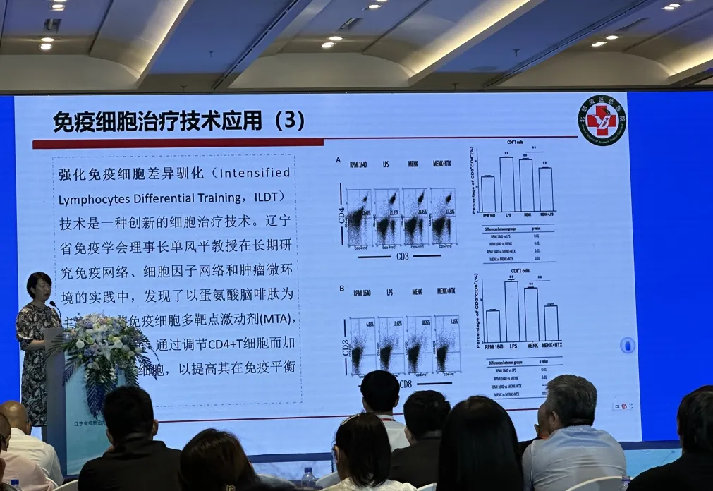 会议上北部战区总医院于卉颖主任介绍了辽宁省肿瘤免疫学重点实验室的研究进展,解读了ILDT技术——强化免疫细胞差异驯化技术。